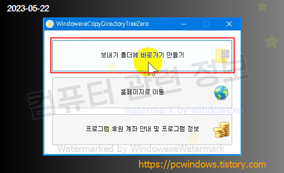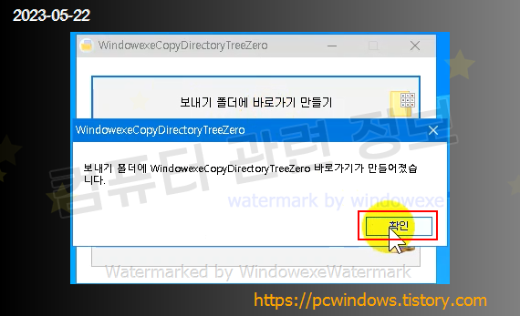 마우스 우클릭해서 보내기 - WindowexeCopyDirectoryTreeZero 를 클릭하세요.