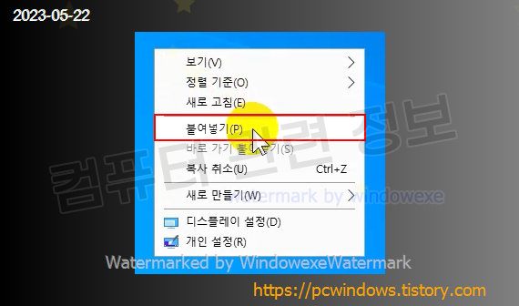 붙여넣기 하고 싶은 폴더로 이동해서 마우스 우클릭을 하고 붙여넣기 하세요.
