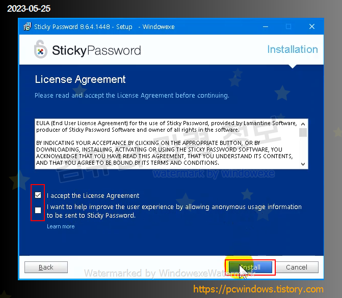 밑에 있는 프로그램 개선 참여는 필요없으므로 체크해제하고 Install 클릭