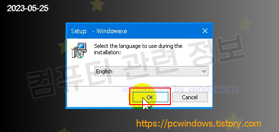 다운로드 받은 파일을 실행하세요. OK 클릭 (한국어 미지원)