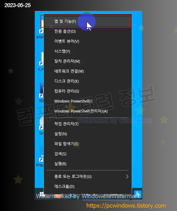 시작 - 우클릭 - 앱 및 기능 실행. (윈도우 11에서는 설치된 앱)