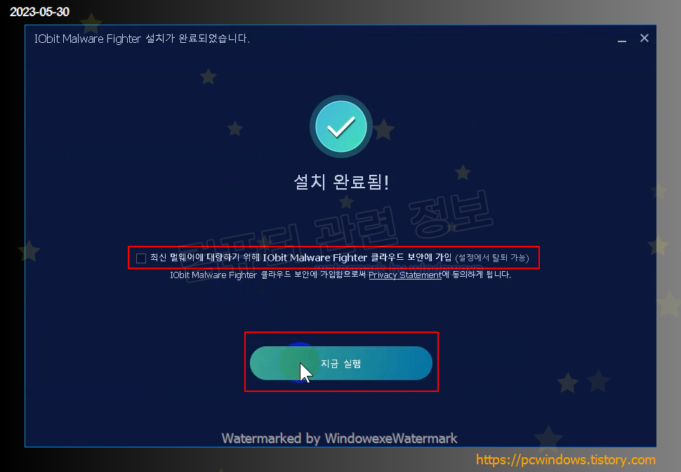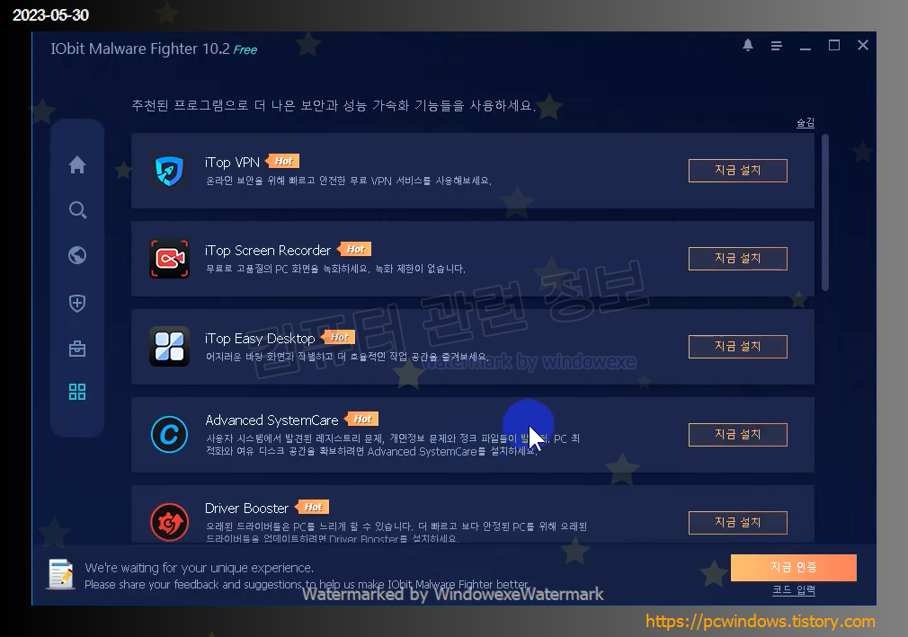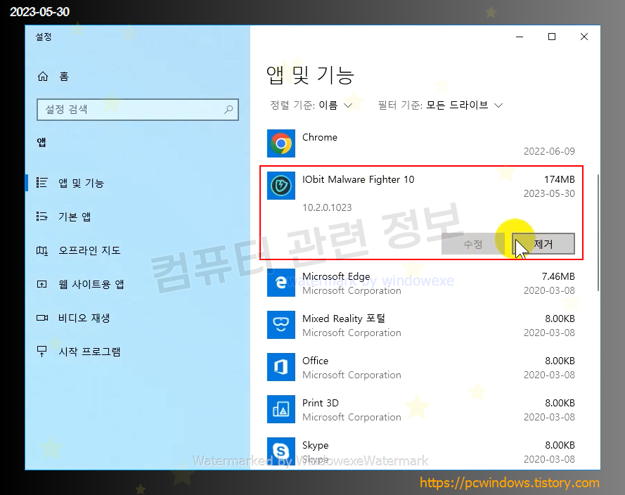 IObit Malware Fighter 10 를 찾아서 제거클릭