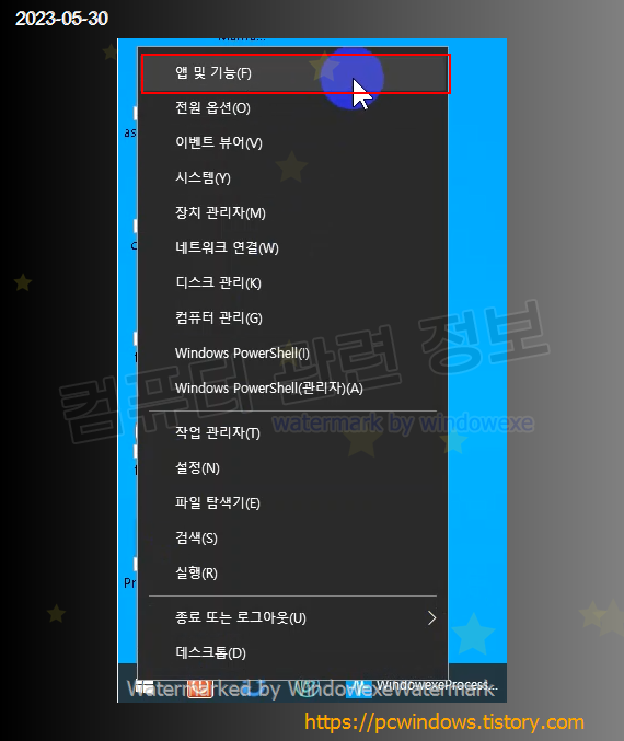 시작 - 우클릭 - 앱 및 기능 실행. (윈도우 11에서는 설치된 앱)