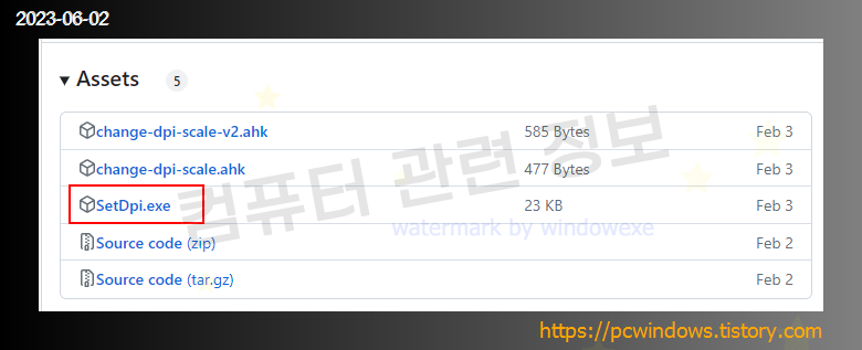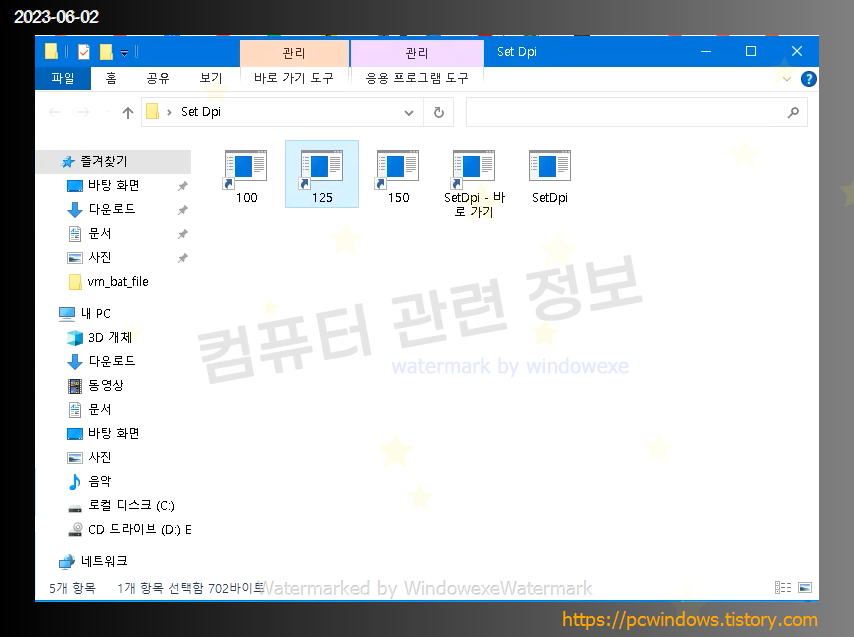 위 링크로 이동해서 SetDPI.exe 파일을 다운로드 받으세요.