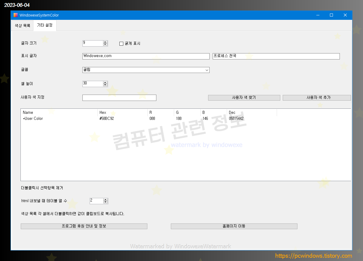 프로그램 글자크기 설정, 사용자 정의 색 추가, html 파일로 내보내기 기능이 있습니다.