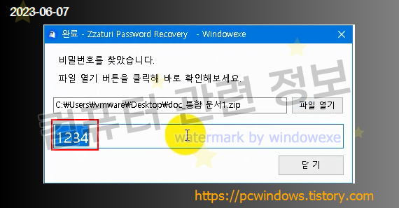 비밀번호 푸는 프로그램이 다 그렇듯 무작위 대입방식(브루트포스, brute force)이라서 비밀번호가 복잡하면 암호를 푸는 것은 불가능합니다.