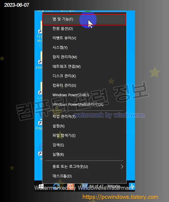 시작 - 우클릭 - 앱 및 기능 실행. (윈도우 11에서는 설치된 앱)