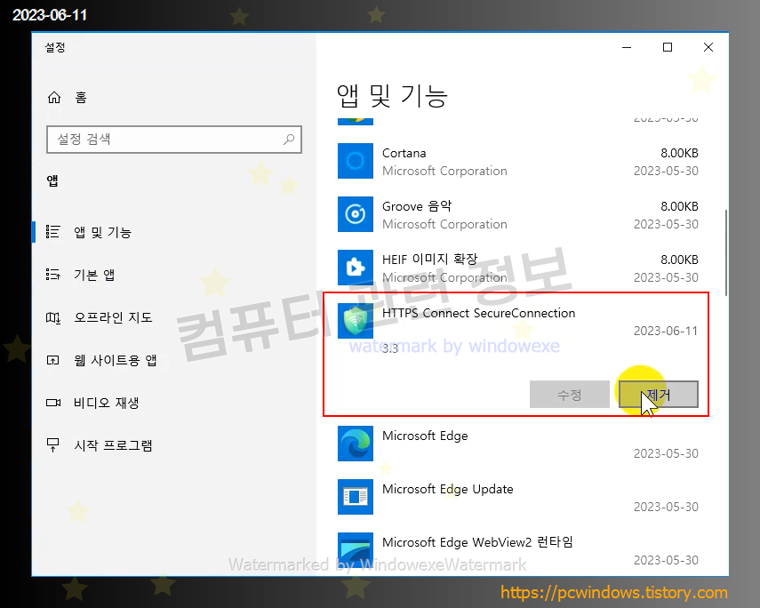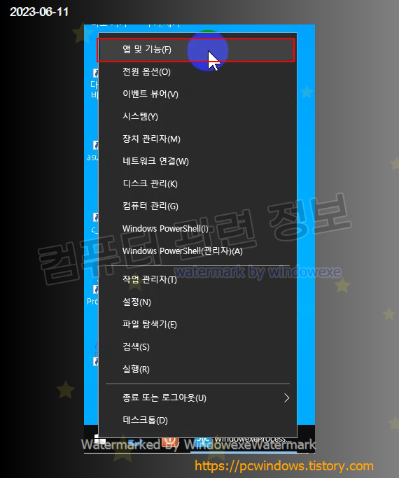 시작 - 우클릭 - 앱 및 기능 실행. (윈도우 11에서는 설치된 앱)
