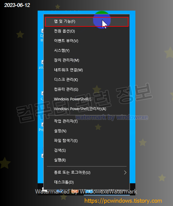 시작 - 우클릭 - 앱 및 기능 실행. (윈도우 11에서는 설치된 앱)