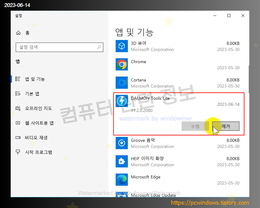 DAEMON Tools Lite 를 찾아서 제거클릭