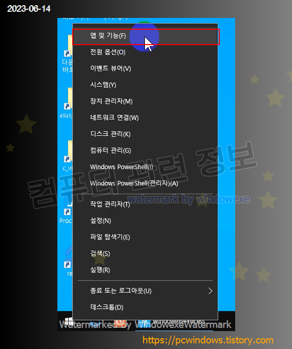 시작 - 우클릭 - 앱 및 기능 실행. (윈도우 11에서는 설치된 앱)