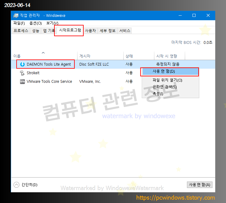시작 프로그램 이름 : DAEMON Tools Lite Agent