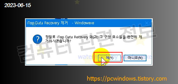 프로그램을 삭제할건지 물어보는데 예 클릭.