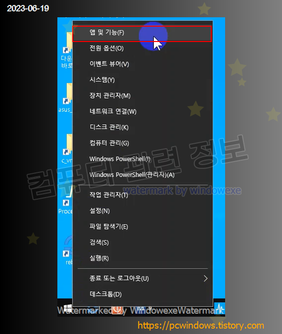 시작 - 우클릭 - 앱 및 기능 실행. (윈도우 11에서는 설치된 앱)