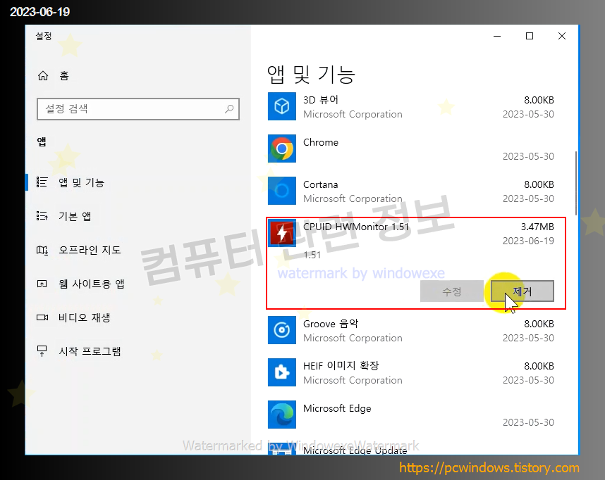 CPUID HWMonitor 를 찾아서 제거 클릭