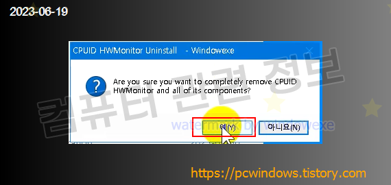 프로그램을 삭제할건지 물어보는데 예 클릭.