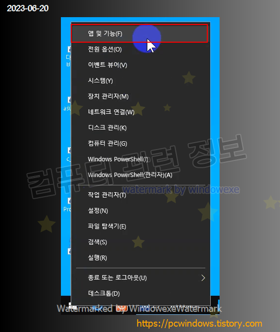 시작 - 우클릭 - 앱 및 기능 실행. (윈도우 11에서는 설치된 앱)