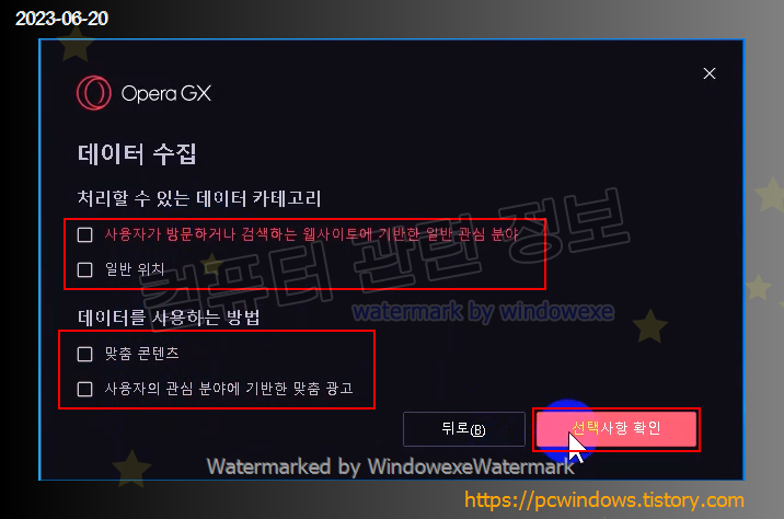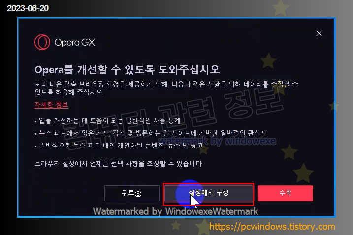 비 개인 정보 수집 및 프로그램 개선에 참여할건지 물어보는데 설정에서 구성 클릭