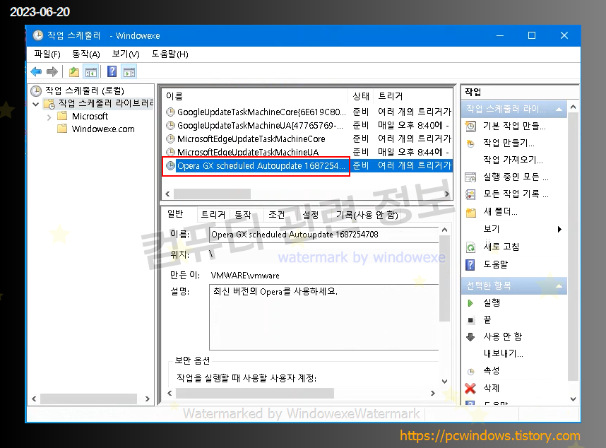 스케쥴러 이름 : Opera GX scheduled Autoupdate 1687254708