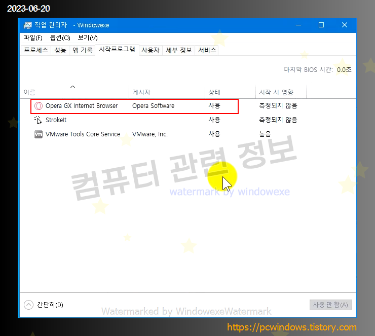 Opera GX Internet Browser 가 시작 프로그램에 등록되어 부팅시 자동으로 실행됩니다.