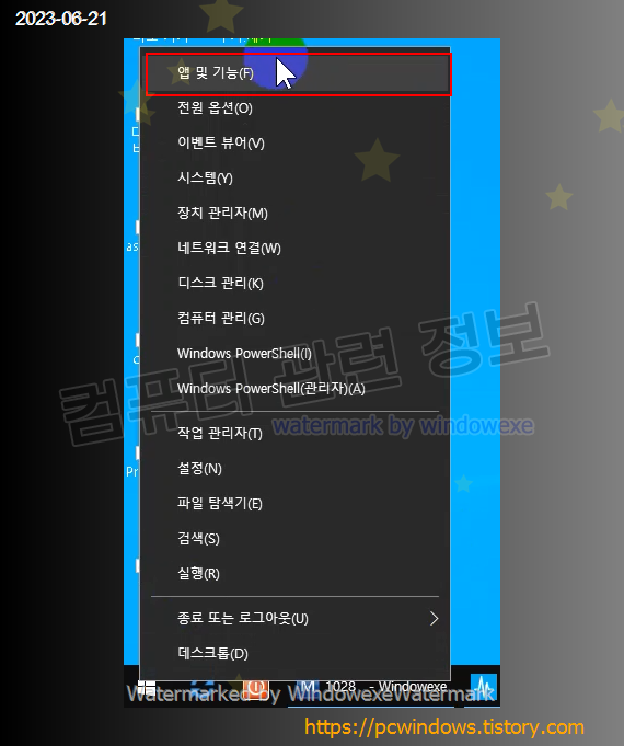 시작 - 우클릭 - 앱 및 기능 실행. (윈도우 11에서는 설치된 앱)