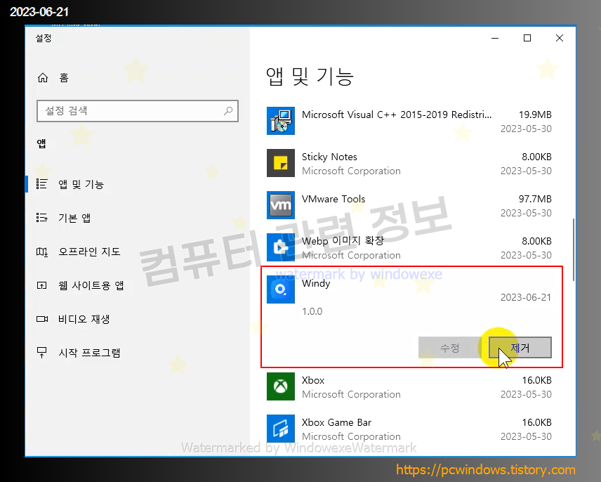 C:\Users\사용자이름\AppData\Local\Windy\uninst.exe