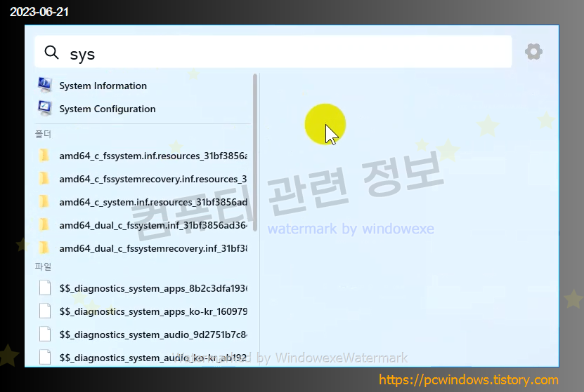단어를 입력하면 시스템에 있는 파일을 검색합니다. (에브리씽 프로그램 사용)