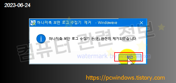 프로그램이 정상적으로 제거되었습니다. 확인 클릭.