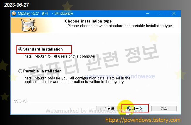 일반 설치, 무설치 포터블로 실행할건지 물어보는데 원하는 방식에 체크.