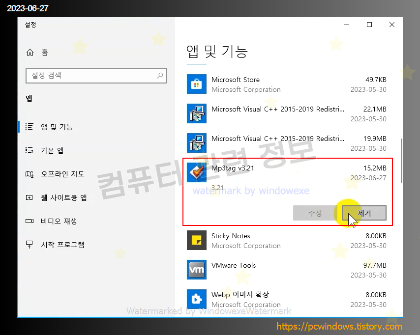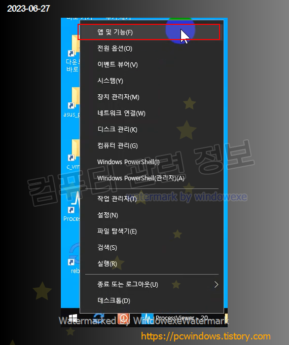 시작 - 우클릭 - 앱 및 기능 실행. (윈도우 11에서는 설치된 앱)