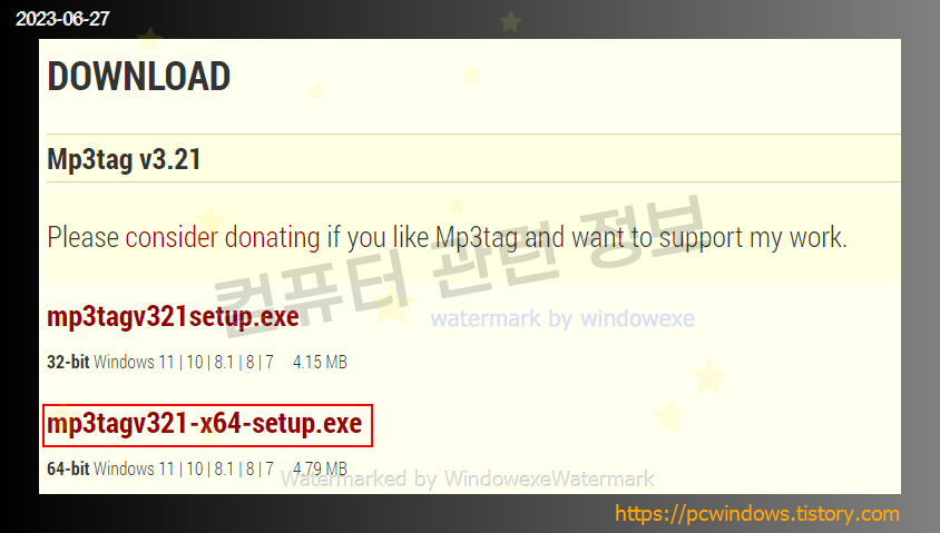 위 링크로 이동해서 mp3tagv321-x64-setup.exe 를 클릭하세요.