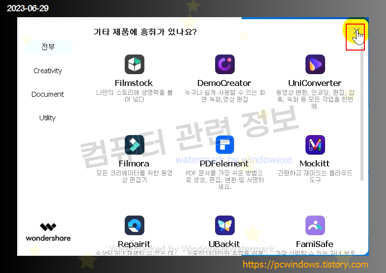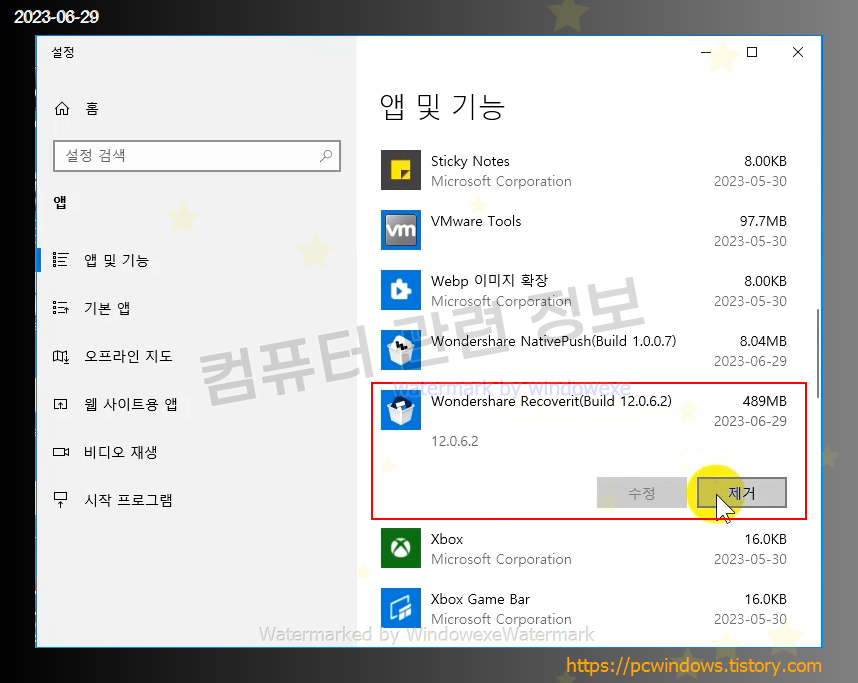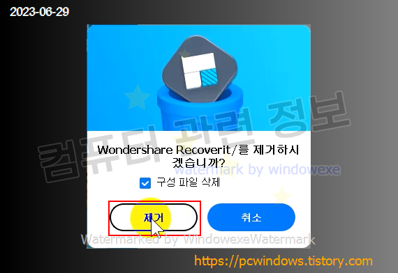Wondershare Recoverit 를 찾아서 제거 클릭