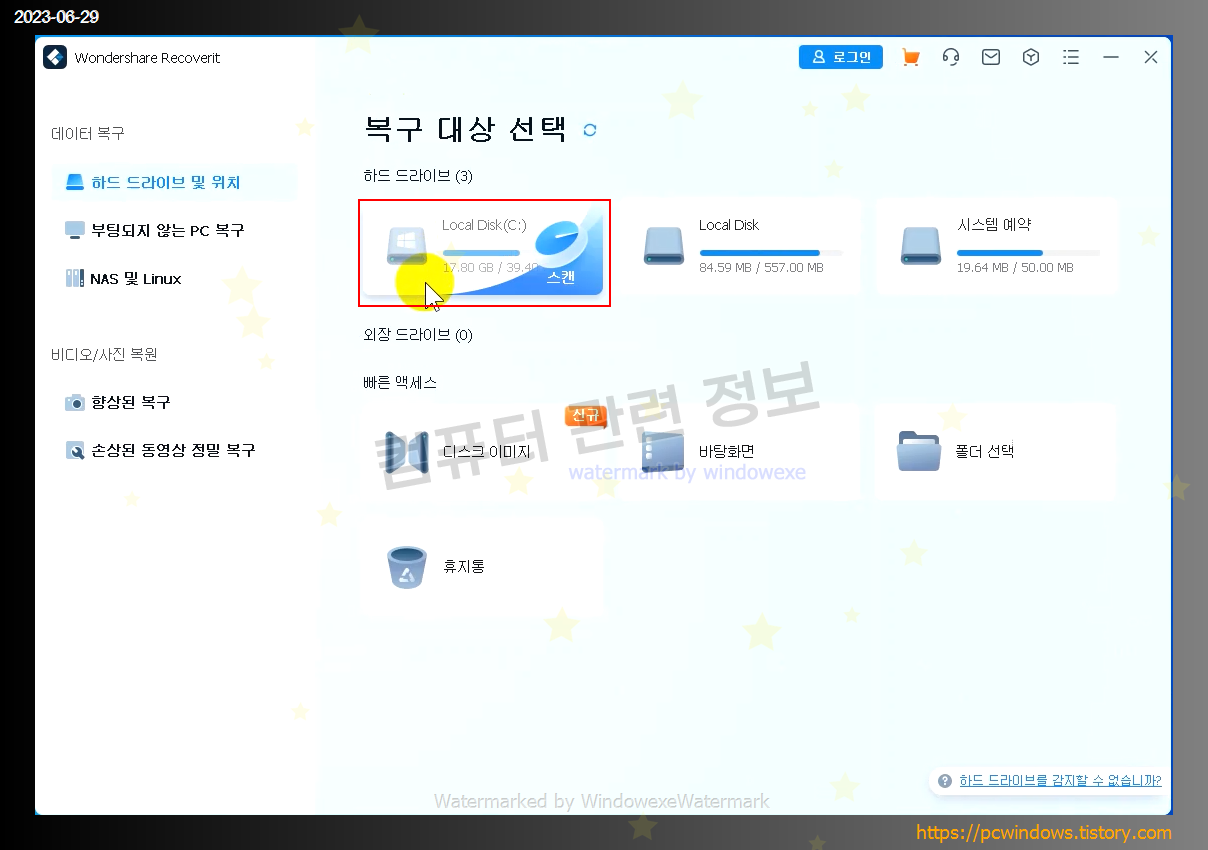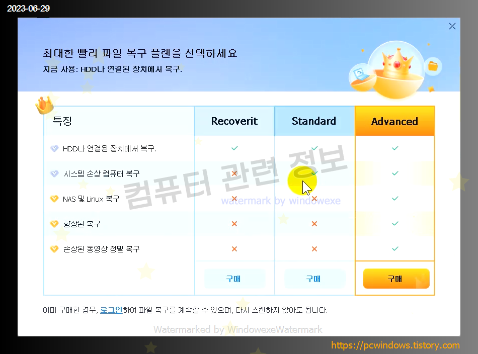 라이선스 : 유료, 무료 사용자는 복구 가능한 파일 검색만 가능