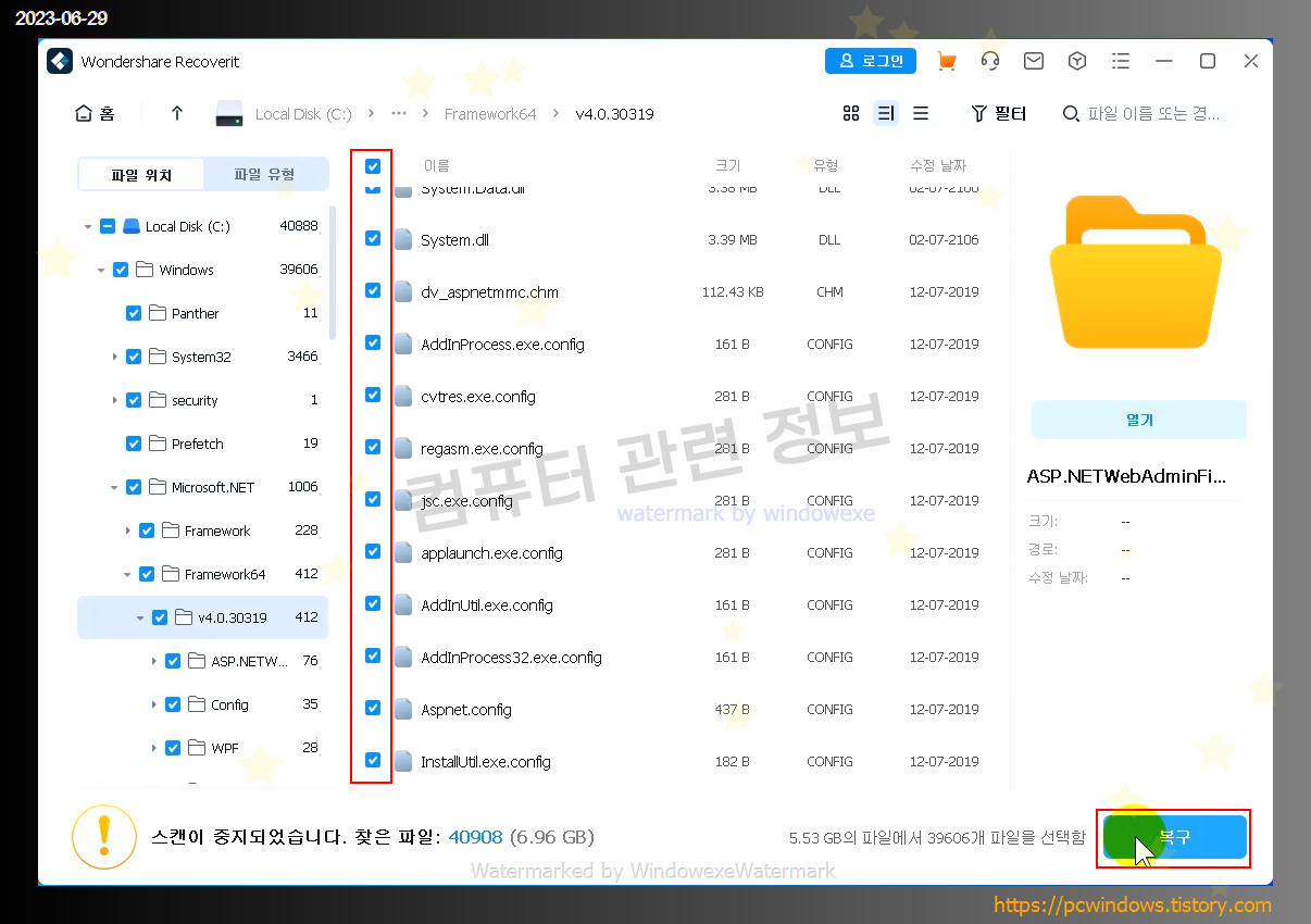 잠시 기다리면 삭제된 파일이 표시되는데요. 복구할 파일을 체크하고 하단의 복구를 클릭하면 됩니다.