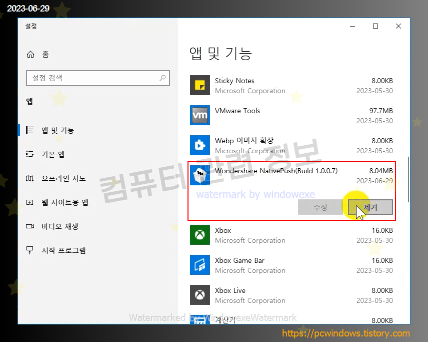 Wondershare NativePush 프로그램도 삭제하세요. 제거 클릭