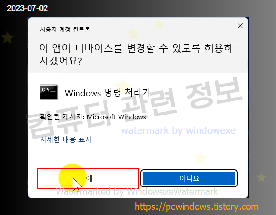 사용자 계정 컨트롤 메세지가 나오면 예를 클릭하세요.