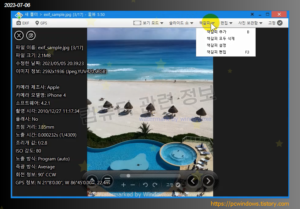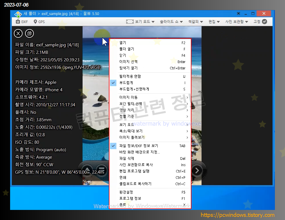 GPS 정보를 포함한 JPEG 파일의 EXIF 정보 표시