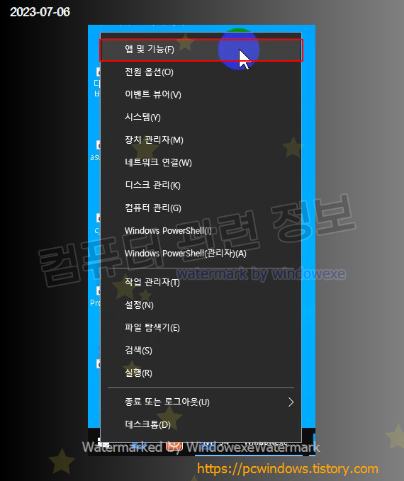시작 - 우클릭 - 앱 및 기능 실행. (윈도우 11에서는 설치된 앱)