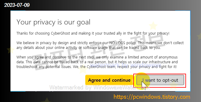 비개인 정보 수집은 필요없으므로 I want to opt-out 클릭