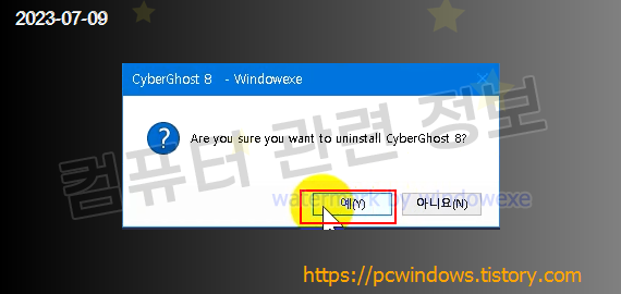 프로그램을 삭제할건지 물어보는데 예 클릭.