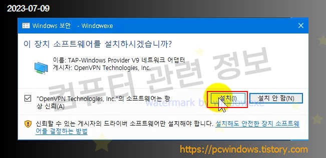 드라이버를 설치할건지 물어보는데 설치 클릭