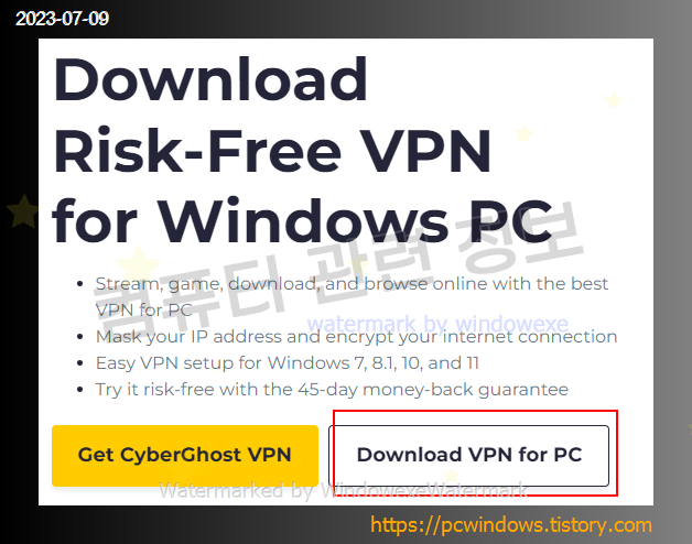 위 링크로 이동해서 Download VPN for PC 를 클릭하세요.