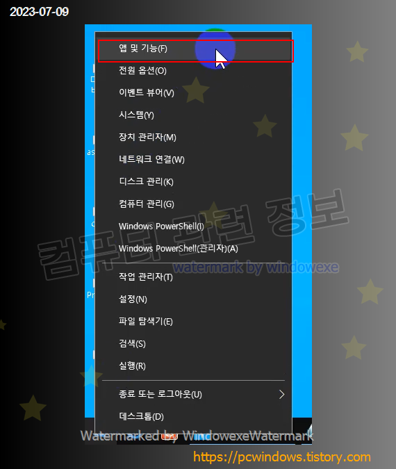 시작 - 우클릭 - 앱 및 기능 실행. (윈도우 11에서는 설치된 앱)