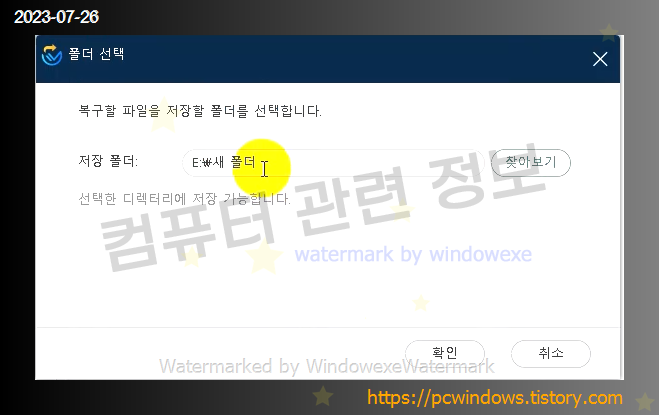 폴더를 지정했으면 확인을 클릭하세요.