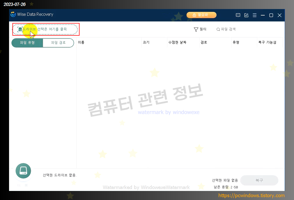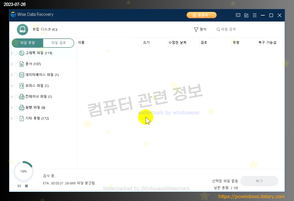 라이선스 : 유료 및 무료, 무료 사용자는 총 2기가의 파일만 복구 가능
