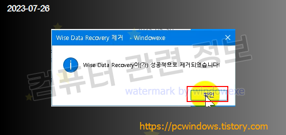 프로그램이 정상적으로 제거되었습니다. 확인 클릭.
