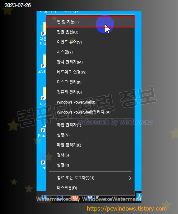 시작 - 우클릭 - 앱 및 기능 실행. (윈도우 11에서는 설치된 앱)