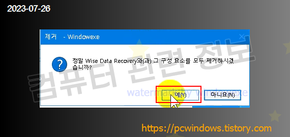 프로그램을 삭제할건지 물어보는데 예 클릭.