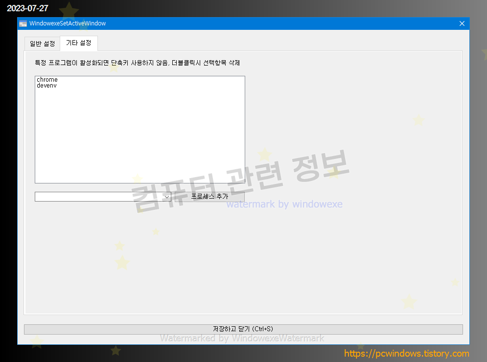 프로세스 이름을 추가하면 해당 프로그램이 활성화된 상태에서는 자동으로 단축키 사용이 중지됩니다.
