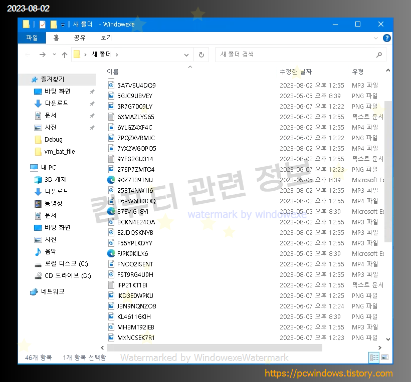 윈도우 탐색기 파일 목록입니다.